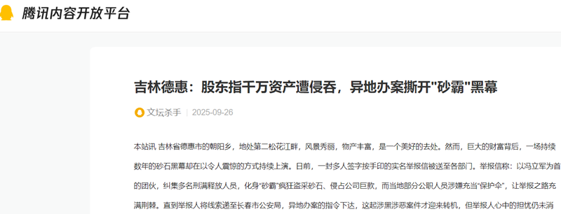 吉林德惠:股东指千万资产遭侵吞,异地办案撕开"砂霸"黑幕